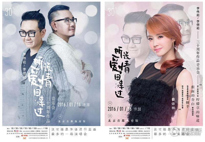 先锋娱乐讯 1月16日,华语乐坛金牌制作人李伟菘、李偲菘在北京首都体育馆以“听说爱情回来过”为主题,举办30周年作品音乐会。最令人瞩目的当属孙燕姿、梁咏琪、蔡依林、彭佳慧,四位献唱嘉宾倾情助阵。
