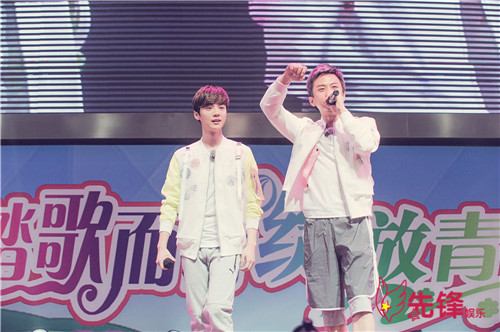 让现场师生更加感动的是,鹿晗还现场清唱了歌曲《致爱》的片段,这首歌也被鹿晗称为是“献给粉丝的一封信”,歌曲中唱到“世界变化不停,人潮川流不息,我只想每个落日身边都有你。如果有一天你会忘记我们的约定,没关系,至少有这首歌我再唱给你听。”清澈且充满诚意的歌声让现场的学生大呼过瘾,也纷纷感叹鹿晗的唱功。此外,邓超与鹿晗还与现场的学生合唱了《奔跑吧兄弟》的主题曲《超级英雄》,“如果我是你的超级英雄,此刻为你高唱这首love song”,轻松有爱的互动洗去了高考生连日来紧张的备考情绪。不过在最后离开的时候,邓超和鹿晗也提醒孩子们,“我们来为你们加油打气,希望你们在高考当天能够用最轻松的状态参加考试。高考顺利,奔跑吧兄弟!”同时,他们也和学生许诺,希望跑男团能够陪着他们从高中走到大学,来年在大学校园见面!