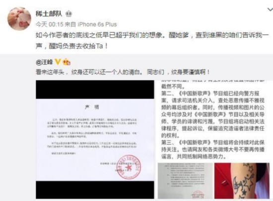 8月2日,网传一女子裸照和视频,爆料人称这是汪峰拍摄的其学员徐歌阳裸照。随后汪峰本人在微博中辟谣称。8月3日凌晨,章子怡转发汪峰的微博并写道:“如今作恶者的底线之低早已超乎我们的想象。醒她爹,查到谁黑的咱们告诉我一声,醒妈负责去收拾Ta!”